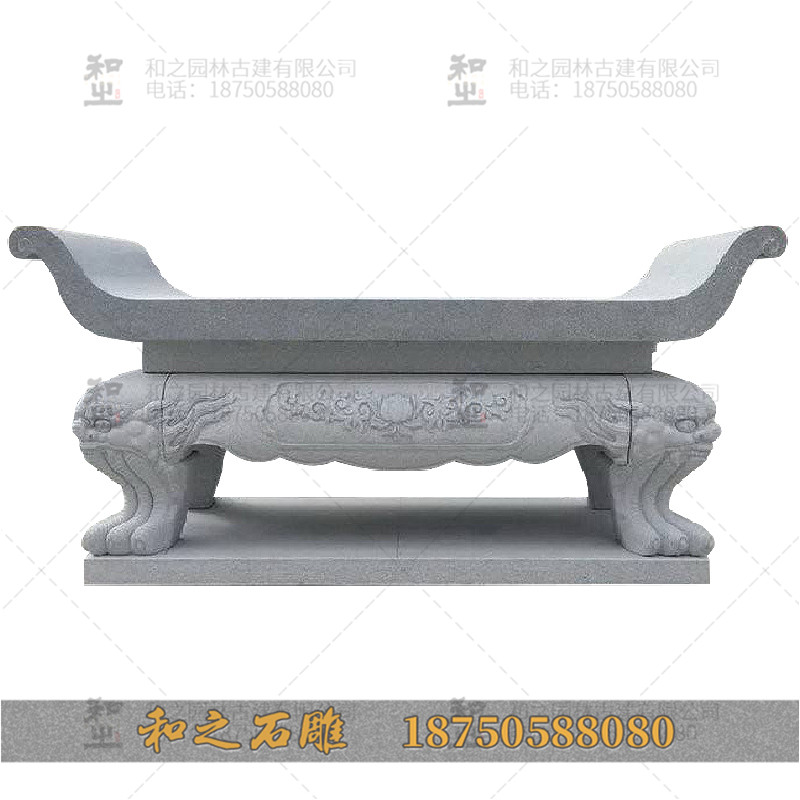除了石雕香爐是寺廟中不可少的石雕器具外,而石雕供桌也是寺廟中常見的一種石雕工藝品,因?yàn)樾枰腊轃?,那么就需要有供桌可以擺放東西。這不管是在寺廟,或者是每個(gè)家庭里祭拜,都需要有桌子。