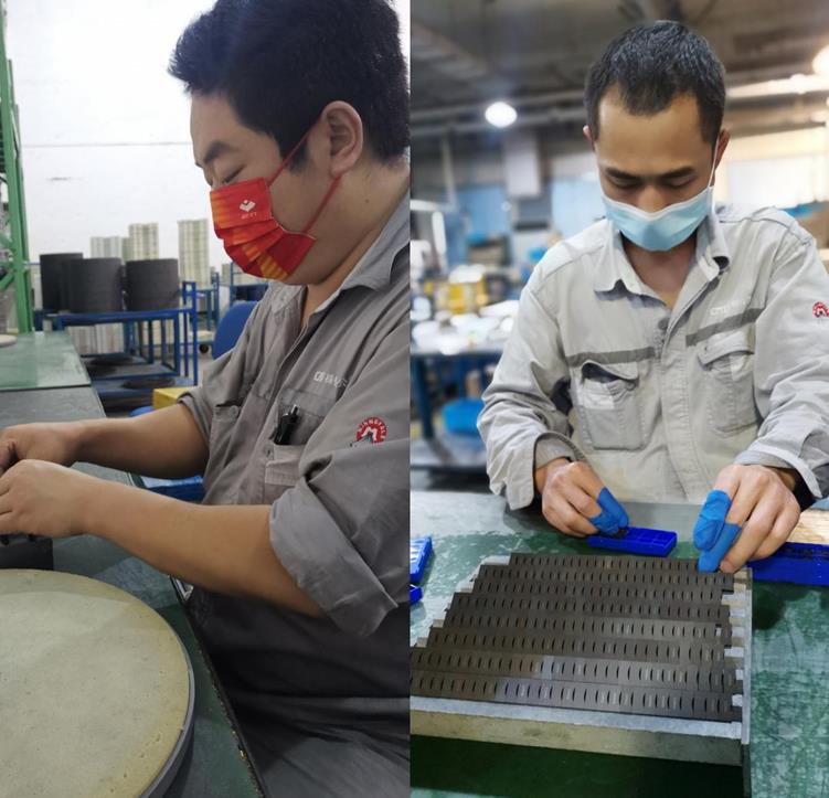 駐廠當(dāng)日,由于時(shí)間緊迫,保證品種的毛坯供應(yīng)成了當(dāng)務(wù)之急。為發(fā)揮駐廠生產(chǎn)團(tuán)隊(duì)的最大生產(chǎn)效率,盡快完成銷售催急品種的生產(chǎn),在嚴(yán)格遵守疫情防控要求的情況下,駐廠生產(chǎn)團(tuán)隊(duì)積極配合,制定生產(chǎn)組織方案,“無死角”做好生產(chǎn)保障工作,確保品種的及時(shí)交付。在人員相對(duì)緊缺的情況下,駐廠人員為盡快完成催急品種,主動(dòng)請(qǐng)纓延長(zhǎng)上班時(shí)間。閉環(huán)生產(chǎn)第一天,刀片一廠碩果累累,壓制工序超額完成11個(gè)品種的壓制;燒結(jié)工序在人員數(shù)量減半的情況下維持6臺(tái)壓力爐和1臺(tái)真空爐的正常運(yùn)行,保障壓制當(dāng)天壓坯和燒結(jié)產(chǎn)品的及時(shí)轉(zhuǎn)出。
