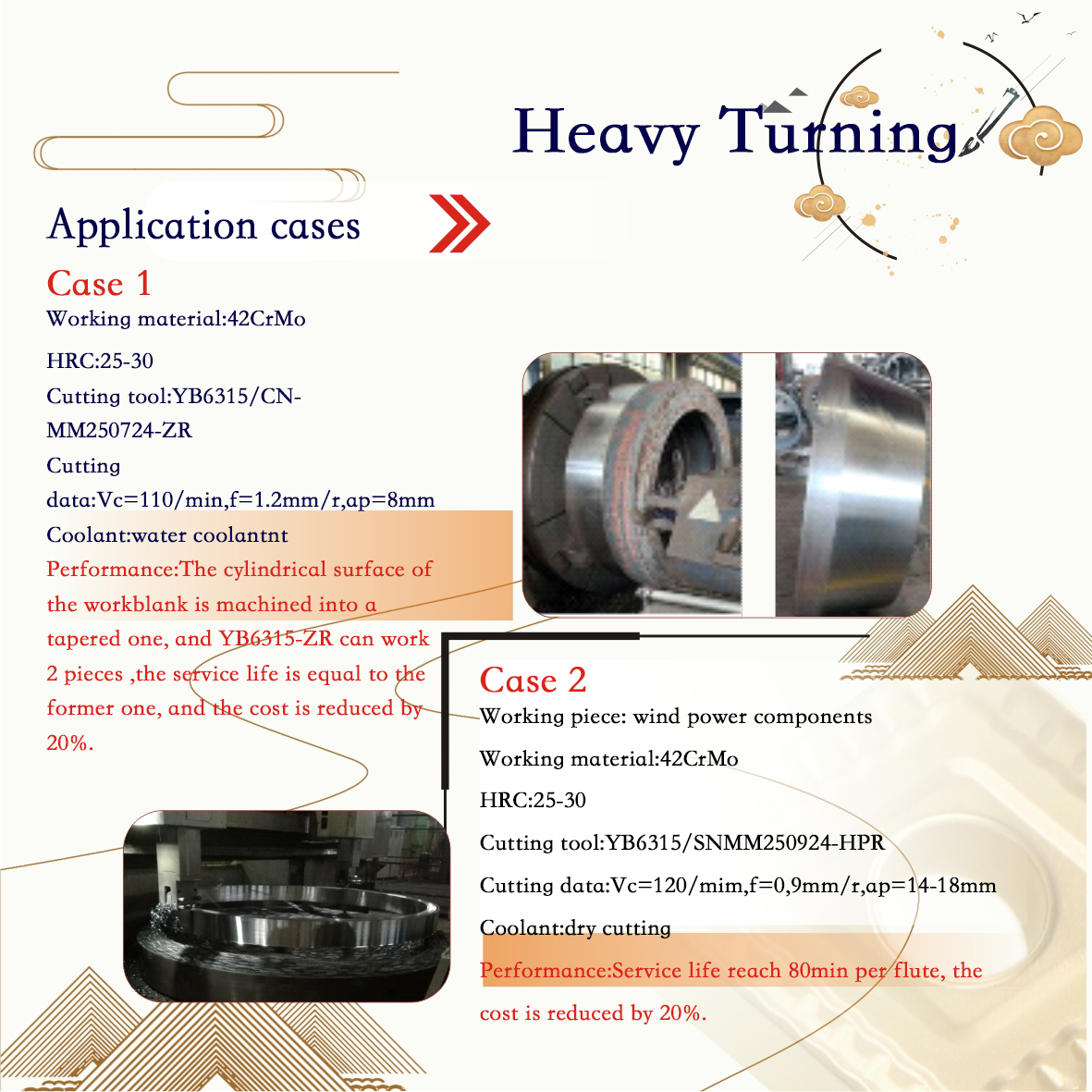 Performance: The cylindrical surface work blank is machined into a tapered surface, and YB6315-ZR can finish 2 pieces.The service life is equal to the former one, and the cost is reduced by 20%.
