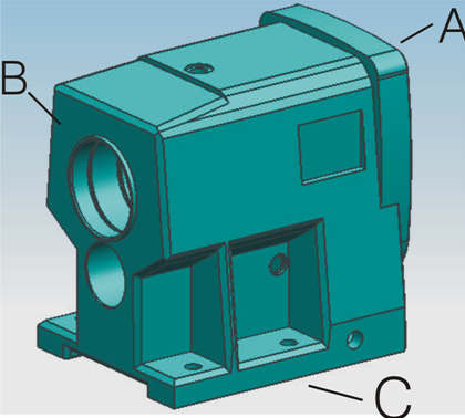 Rough millingsurface A – Rough and finish milling surface C (bottom surface)—Rough millingsurface B—finish milling surface A,B—Rough boring-Groove milling—finish boring——Drilling--Tapping