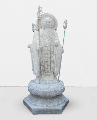本作品為三面地藏王菩薩石雕立像,石材選擇福建本地性價(jià)比高的花崗巖材料,質(zhì)地細(xì)膩,色澤單純,品質(zhì)上乘。造型選擇經(jīng)典的九華山地藏菩薩造型,制作成三面一體沙門形地藏菩薩石雕。福建和之石雕公司支持圖片定制地藏菩薩石雕,歡迎來(lái)廠參觀定做。