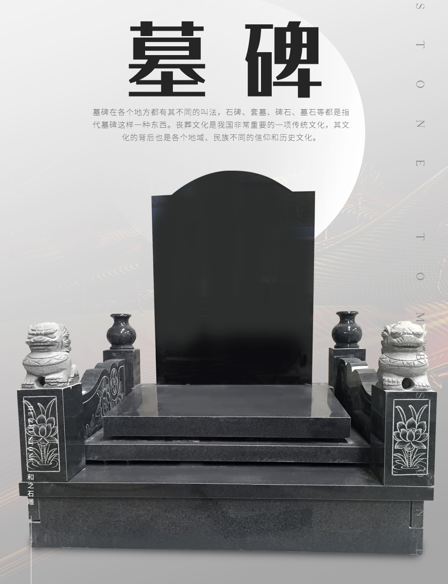 這款墓碑整體采用山西黑石材加工而成,山西黑是色彩黝黑,是非常符合殯葬文化的石材,在墓碑使用上,這種石材使用的最多,也是中式墓碑主流的墓碑設(shè)計(jì)材質(zhì)。