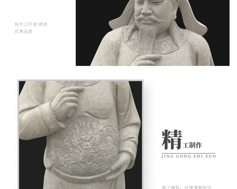 由福建惠安和之園林古建公司出品的這一尊李世民石雕像,高度一米八,采用福建本地優(yōu)質(zhì)芝麻白石材雕刻,很好的將李世民神情雕刻傳神逼真,做工精良,物美價(jià)廉,歡迎各地朋友來電問價(jià)。