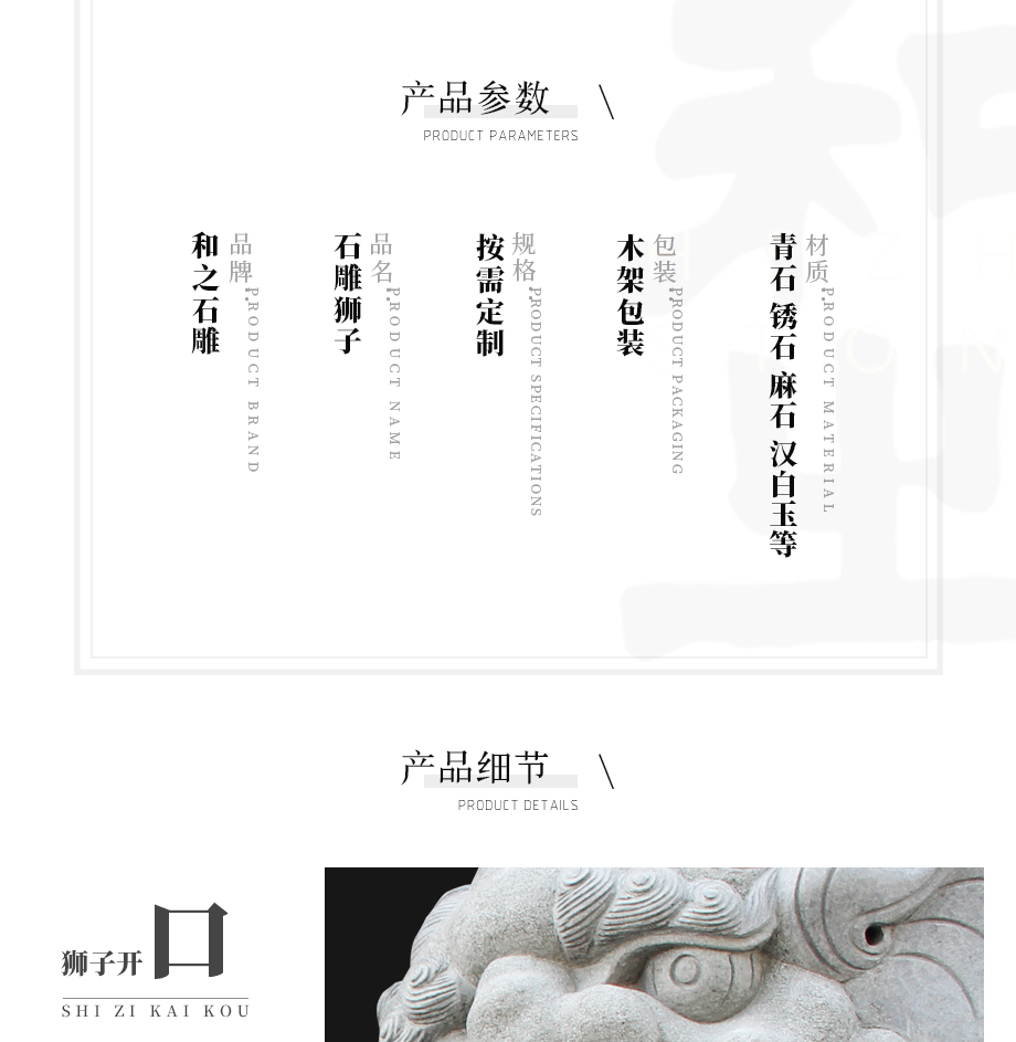 石雕獅子是人們非常喜歡擺放的一種石雕擺件,在酒店,銀行,家宅,墓地,店鋪都可以擺放,主要原因有兩種,第一,可以增加周邊藝術(shù)文化氣息,第二,可以增加藝術(shù)美感。和之石雕專業(yè)雕刻石獅子,所加工的有著精湛的工藝和良好的視覺藝術(shù)美感。