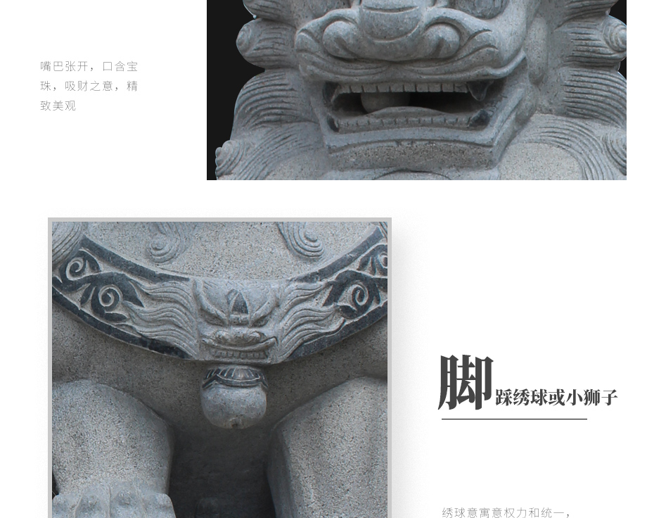 這款石獅子是典型的北京獅造型,北京獅是中國(guó)古代鎮(zhèn)宅,護(hù)院的神獸,長(zhǎng)期以來(lái),這種作品廣泛用于寺廟,陵園,公園,景區(qū),銀行,大學(xué),家庭,宮殿,府邸,廣場(chǎng),橋梁等地方,幾乎東方雄獅已經(jīng)喚醒了中國(guó)人沉寂已久的內(nèi)心。石獅子是一種神獸,人們?cè)诠糯?,?duì)獅子是非常敬畏的,通過(guò)獅子,表達(dá)情感和寓意,通過(guò)獅子也可以表示一種驅(qū)魔辟邪的意味。