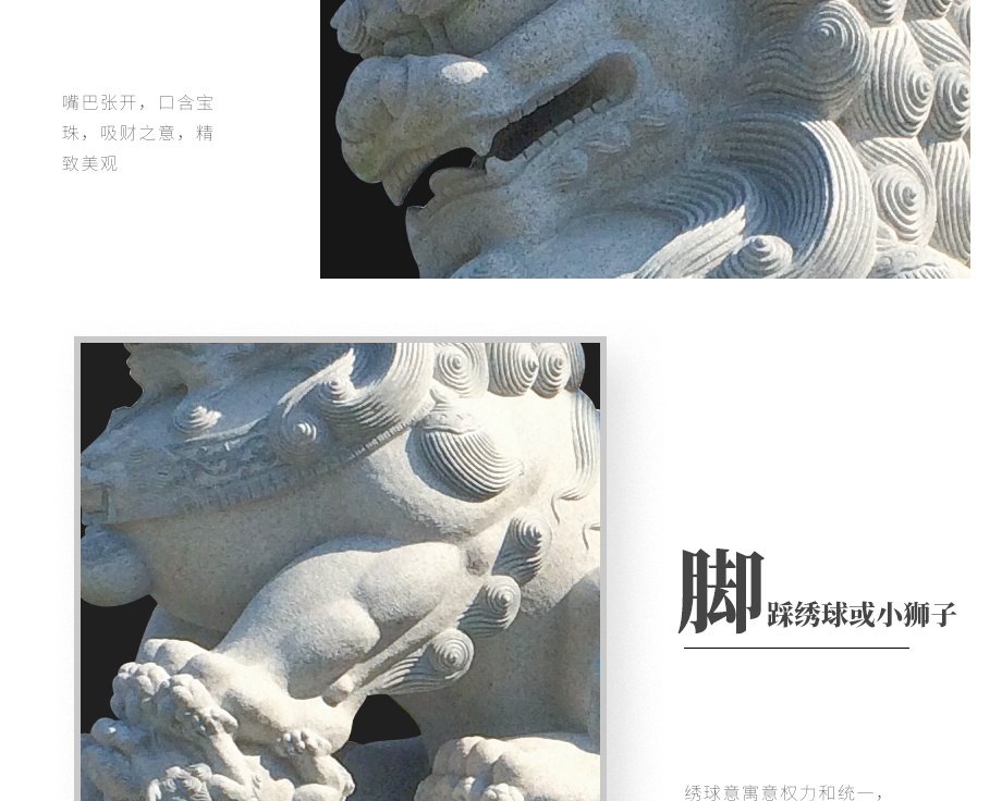 這款石雕獅子分為兩個部分,底座部分和上面的獅子部分,我們分別介紹一下: