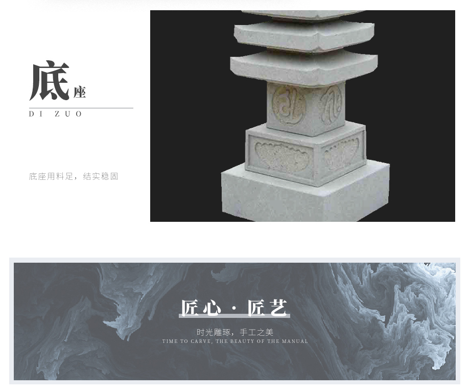 整個(gè)佛塔采用芝麻白石料加工而成,高度可以自行確定,因?yàn)榻Y(jié)構(gòu)簡(jiǎn)單,如果可以,高度做到20-30米是不成問題的。