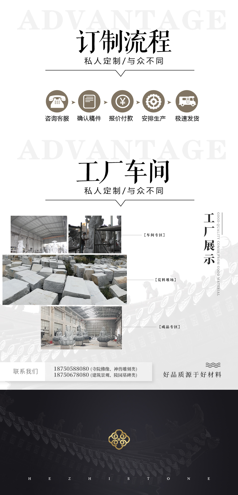 寺廟石雕出食臺擺件一般由三個基礎的部件構(gòu)成:臺座、臺柱、承露盤。臺座、臺柱一般為八邊形,承露盤則通常為仰蓮狀。臺柱的八面通常是雕刻南無七寶如來名稱以及本師釋迦牟尼佛的大名。石雕出食臺,一般采用浮雕、圓雕、線雕等多種工藝手法,具有較高的觀賞價值,給人一種不一…