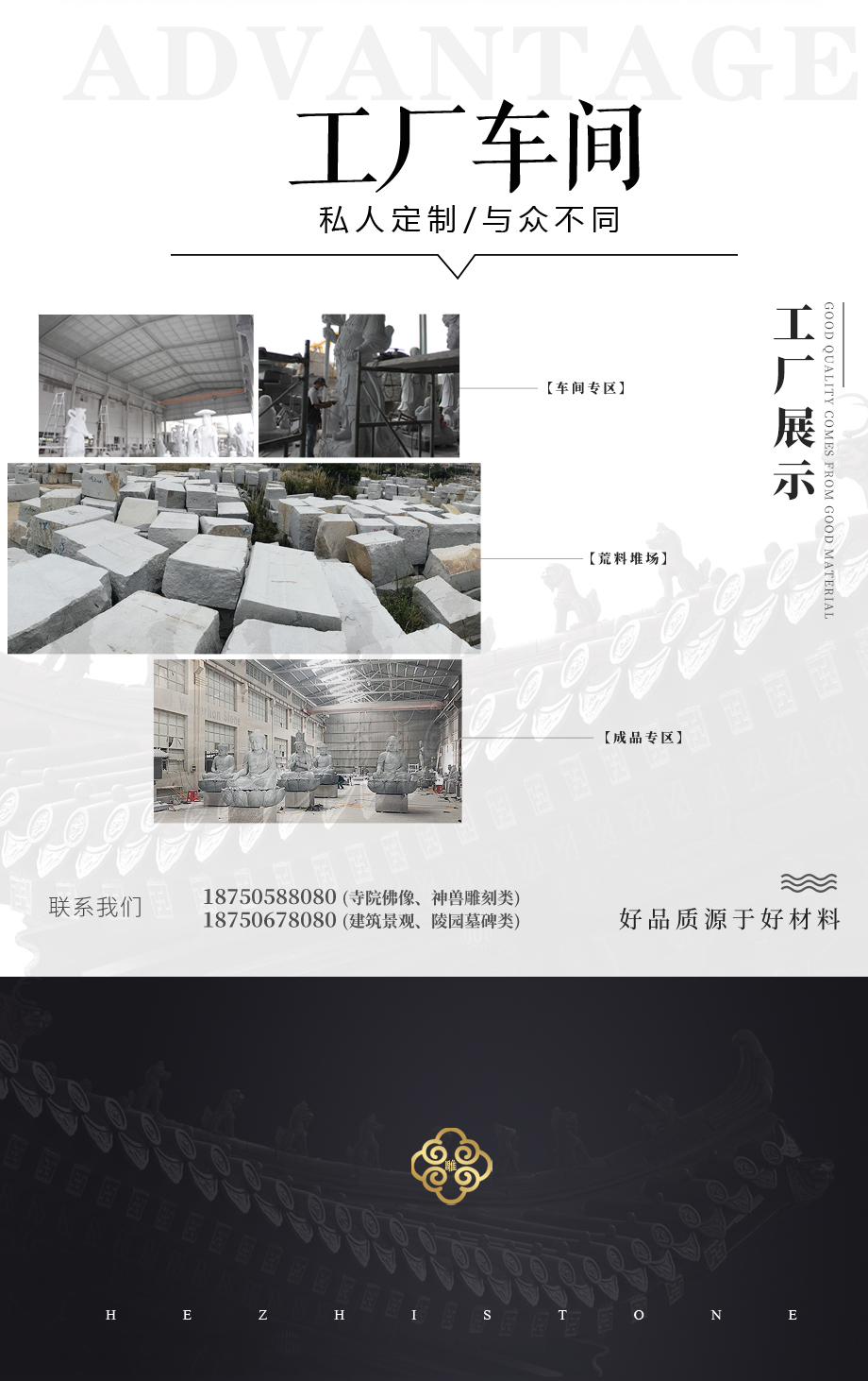 這款石雕獅子采用的是青石加工而成的,石獅子上一邊是踩著一個小繡球,也象征著權(quán)利的意思,而另一邊則是串著錢幣,那么也就是有一種招財?shù)脑⒁饬恕芍华{子小巧可愛,互相轉(zhuǎn)頭相望,像是在玩鬧的兩只小石獅。這款石獅子采用的也是圓雕的工藝,圓雕所加工的獅子,非常的形象生動,既給人一種威望且又帶著俏皮的獅子造型。