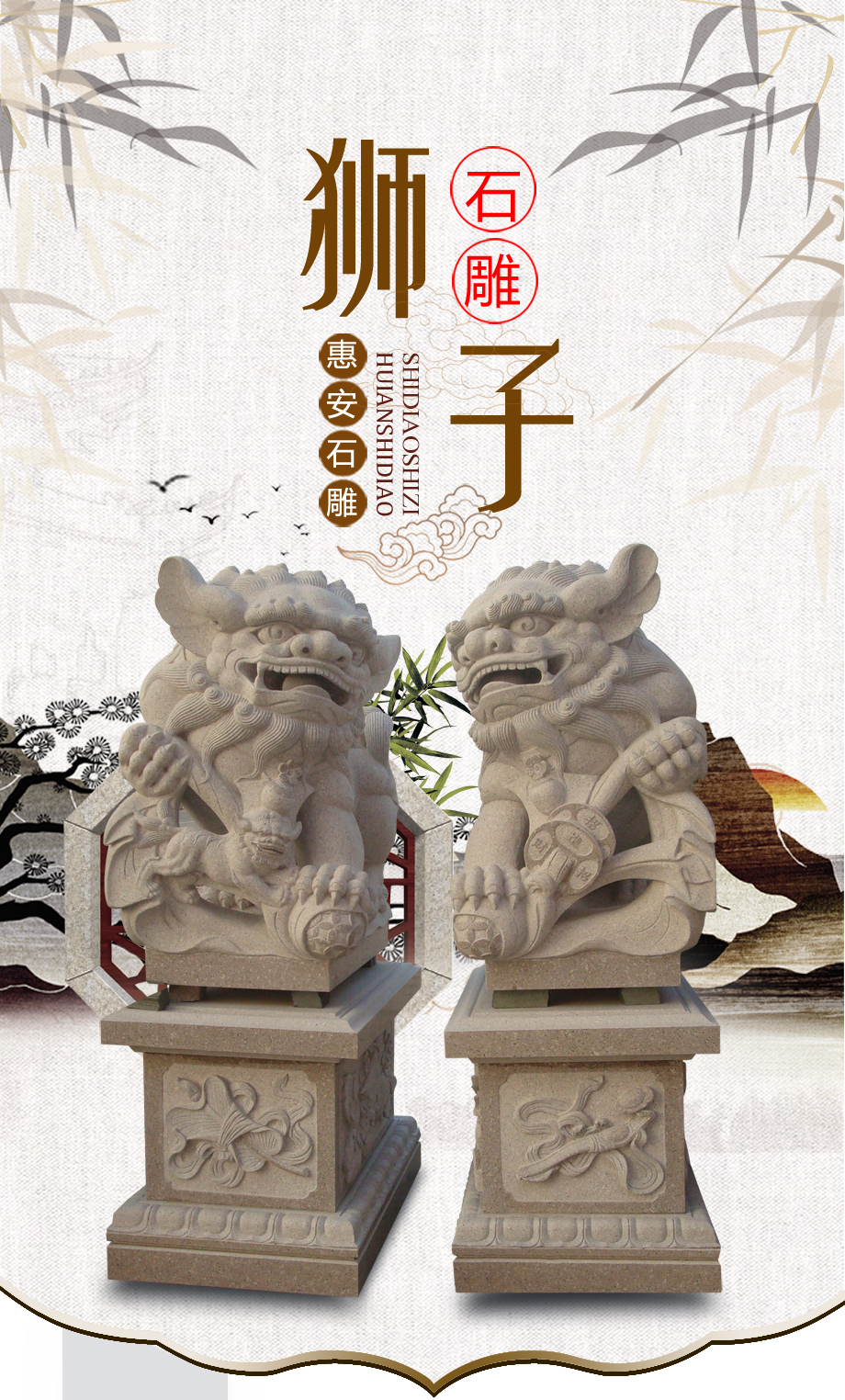 石獅子就被人們視為看守家門(mén)的吉祥物,被擺放在各個(gè)地方,比如企業(yè)公司門(mén)口、別墅門(mén)口、景區(qū)寺廟門(mén)口等都可以看到石獅子。石獅子在不同時(shí)代是有不同的特點(diǎn),而且在不同地區(qū)所使用的石雕獅子也不同。北方的獅子外形大氣,雕刻相對(duì)簡(jiǎn)單,而南方的石雕獅子比較有靈氣、造型比較活潑、雕刻也比較復(fù)雜。