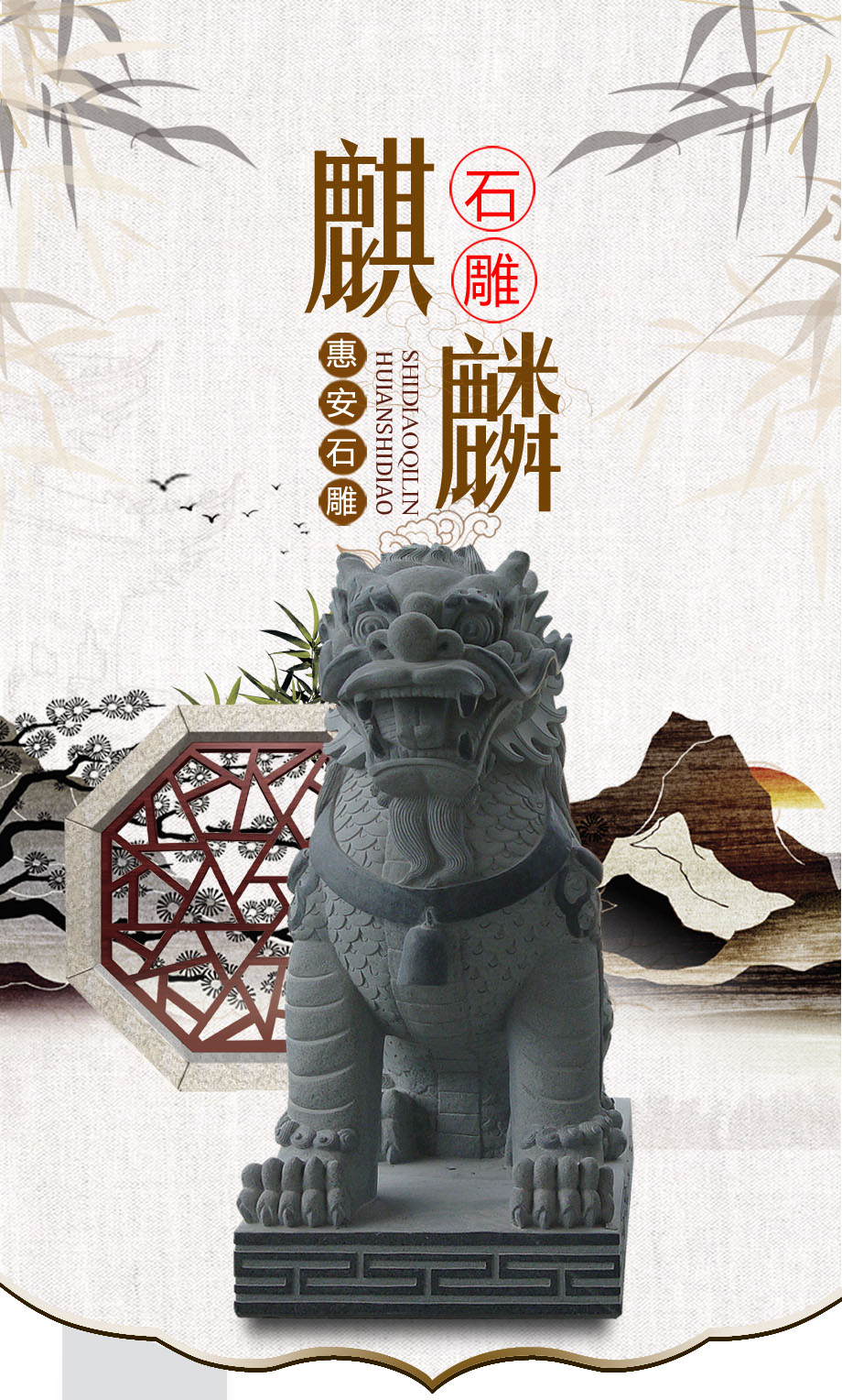 石雕麒麟雕刻適合擺放在門口,這樣能夠起到很多方面的作用。大門口石雕麒麟具有調(diào)整運(yùn)勢(shì)的作用,也起到很好的裝飾作用。石雕麒麟的造型比較多樣化,人們一般會(huì)根據(jù)需求定做。