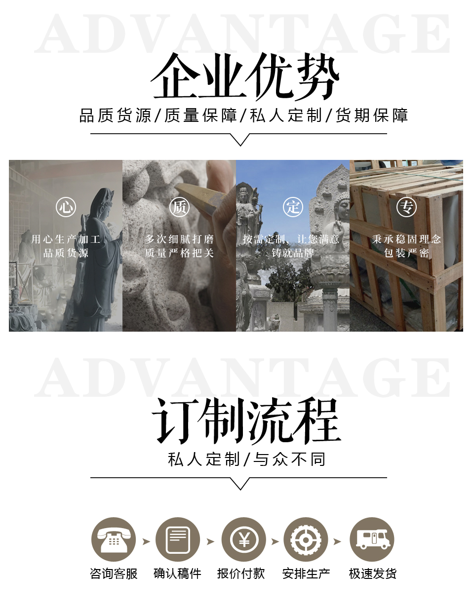 整個作品色彩樸實,結構牢固,款式新穎,造型別致。福建惠安和之園林古建有限公司專業(yè)生產和加工石雕龍柱,對龍柱的加工也有自己獨特的加工體系和方式,需要訂做的朋友可以前來咨詢。