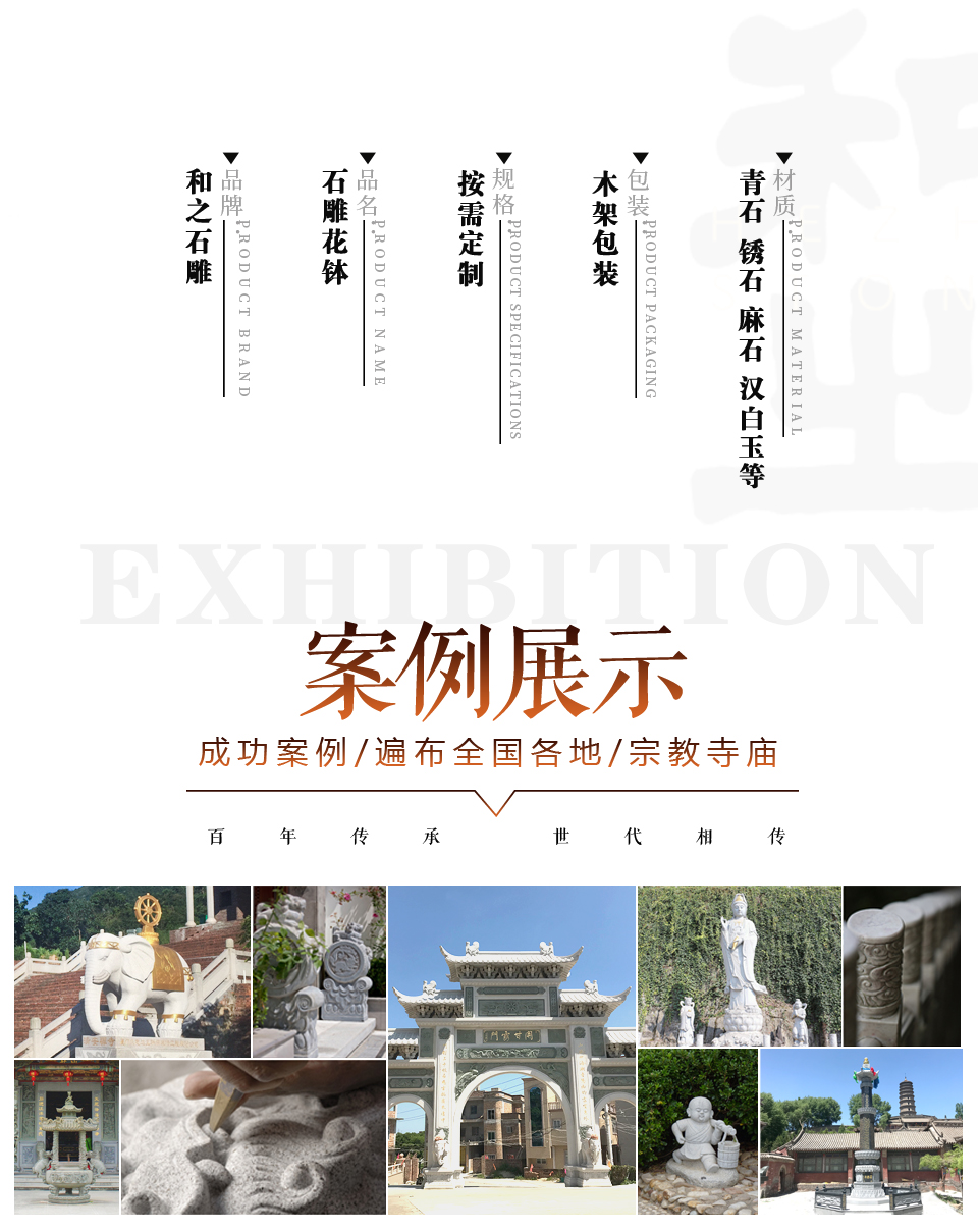 石雕花缽的材質也有多種選擇,如花崗巖、大理石、砂巖等。不同的材質具有不同的特點,如花崗巖質地堅硬,耐磨損,適合戶外使用;大理石質地細膩,色彩豐富,適合室內使用;砂巖質地較輕,易于雕刻,適合制作各種造型的花缽。