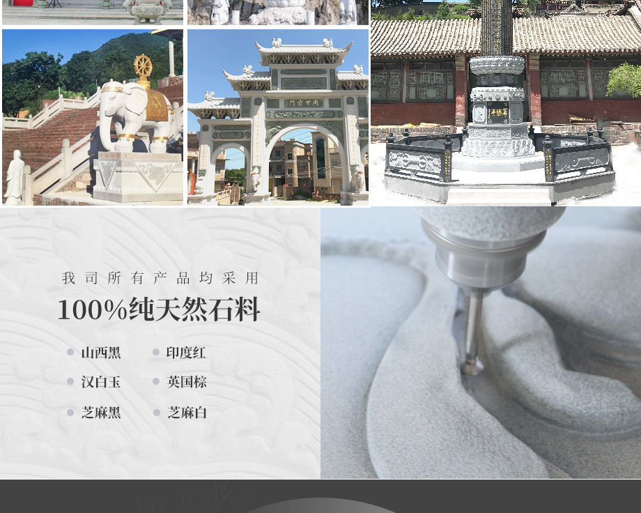 寺院文化和佛學文化的發(fā)展離不開石雕的支撐,此款佛陀舍利塔建筑由和之園林古建石雕廠家良心打造,以優(yōu)質的花崗巖石材為加工主體材料,搭配惠安石雕藝人專業(yè)的雕刻技藝及宗教元素的融入呈現出集合宗教文化氣息和工藝觀賞價值的佛教石雕建筑。