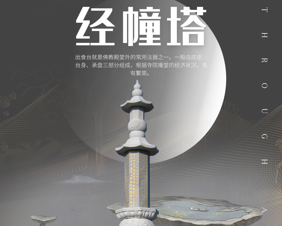 此款石雕經幢由幢頂、幢身和基座三部分組成,主體是幢身,刻有佛教密宗的咒文或經文、佛像等,幢身多呈六角或八角形。此款經幢采用花崗巖雕刻而成,幢身雕刻著陀羅尼經文有避災消難的含義,擺放在寺廟園林之中有宏揚正法、消弭災禍含義。我們和之園林古建專業(yè)雕刻石雕經幢塔,…