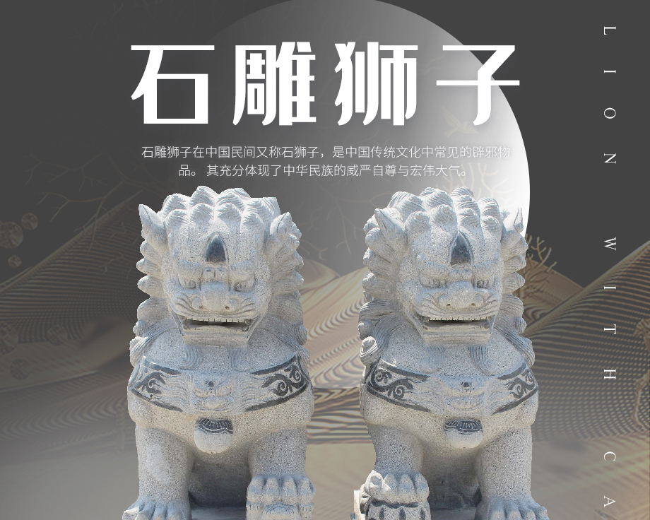 石雕獅子作為漢族傳統(tǒng)文化中常見(jiàn)的辟邪物品,種類(lèi)多樣,可以擺放在多種場(chǎng)所。這一對(duì)石獅子選自?xún)?yōu)質(zhì)的福建本地漳浦黑石材雕就而成,雕刻水平相對(duì)較難,水平也相對(duì)較高。特別適合擺放在大門(mén)外,尤其是中式古宅。給人一種復(fù)古的感覺(jué)。