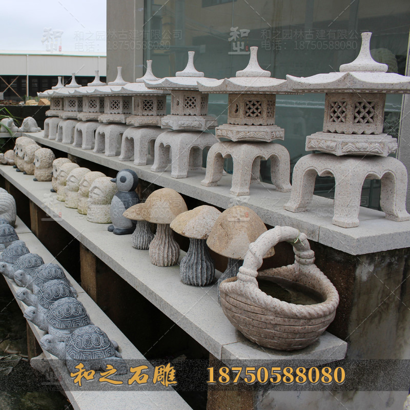 室外而普遍進到庭院裝飾,隨之石燈主要用途的更改,石燈的款式也就更為多元化了,比如出現(xiàn)了三角形或四方形的雪見小燈籠,一起對竿和笠的一部分也給予新的設(shè)計構(gòu)思,石小燈籠的款式由效仿進到自主創(chuàng)新,日本國的石燈除小量用以寺廟之外,大部分的石燈是用以院落、園林景觀裝飾設(shè)計應(yīng)用。