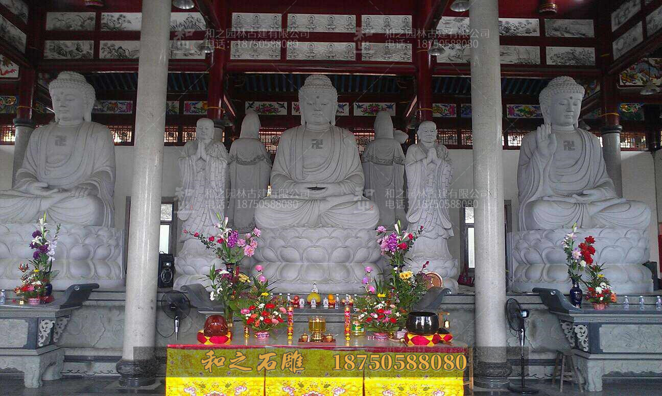 常見的寺廟石雕觀音神像有花崗巖石雕觀音、青石石雕觀音、漢白玉石雕觀音等。福建是花崗巖的盛產(chǎn)地,福建石雕廠在加工石雕觀音時(shí)常用的石材有芝麻白、芝麻灰和青石等。花崗巖石雕觀音不僅外觀色澤清麗,而且能屹立風(fēng)雨中千百年不變。