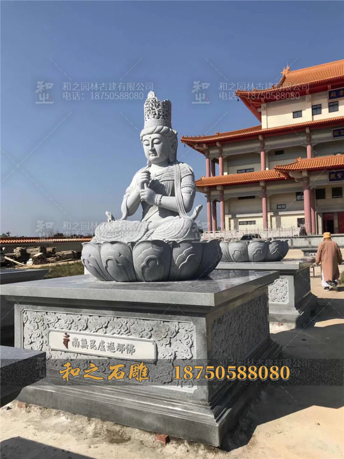 常見(jiàn)的寺廟石雕觀音神像有花崗巖石雕觀音、青石石雕觀音、漢白玉石雕觀音等。福建是花崗巖的盛產(chǎn)地,福建石雕廠在加工石雕觀音時(shí)常用的石材有芝麻白、芝麻灰和青石等?;◢弾r石雕觀音不僅外觀色澤清麗,而且能屹立風(fēng)雨中千百年不變。