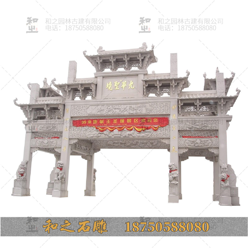 農(nóng)村村口牌坊上面雕刻有各種吉祥寓意的浮雕圖案,如獅子、龍鳳、麒麟、蝙蝠、梅蘭竹菊、荷花、牡丹等寓意吉祥的浮雕圖案。做一個村牌坊多少錢村牌坊價格主要受到材料成本的影響,如果材料成本可控,那么村牌坊價格不會太高。比如做一個總寬12米的村牌坊,那么使用青石做出來的石牌樓價格在15萬左右,而這樣的價格一般是在簡單工藝的基礎(chǔ)上可以做出來。如果我們想要更高的工藝要求,以及想要一些款式比較大氣高端的,那么這其中的價格可能會差5萬到8萬的差別。農(nóng)村牌坊在農(nóng)村入口或者出口以及村內(nèi)祠堂宗祠前應(yīng)用比較多,根據(jù)不同建造區(qū)域情況,尺寸的需求也都有所不同。需要考慮到農(nóng)村村口牌坊的規(guī)格、高度、寬度以及進(jìn)深度等,確保農(nóng)村村口牌樓能夠有良好的建造應(yīng)用。我們把這幾方面的規(guī)格大小要求,工藝都確定下來,那么價格一般就會很明確了。