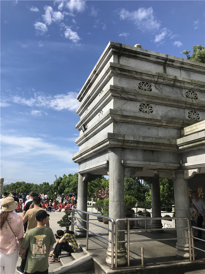 普陀山不可錯(cuò)過的石雕,在每一個(gè)景點(diǎn)都有。在南海觀音文化廣場不僅可以看到巨大的銅制觀音菩薩像,區(qū)域內(nèi)也是有著各式各樣的石材石雕制品。首先是一座巨大的石制山門,預(yù)計(jì)有30米左右寬度,20米左右高,簡單大方。為三門四柱沖天式山門,山門的造型相對簡單。采用花崗巖石材加工制作的山門,即使歷經(jīng)多年,也依然完好無損,還增添了一份古香古色的韻味。山門的左右兩側(cè)是佛教的護(hù)法金剛哼哈二將,密宗稱之為仁王。與哼哈二將石雕像稍有距離但并排站位的是護(hù)法天王四大天王,四大天王威武勇猛,讓一切妖魔鬼怪不敢靠近。在核心區(qū)南海觀音像的東西兩側(cè)是長長的石廊亭,廊亭內(nèi)是玄奘西行以及鑒真東渡的高浮雕故事圖。既可供來往香客休憩,也可以駐足學(xué)習(xí)佛教文化,感受前人的虔誠之心。而南海觀音菩薩的基座四面則都用石制護(hù)欄圍住,以確保游客們的安全。