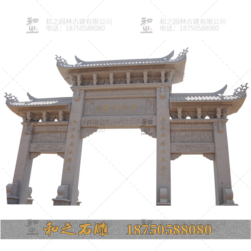 石牌坊山門的樣式有多種,例如;一門簡易型牌坊、山門牌坊、五門牌坊、還有復雜性帶樓的三門三樓、五樓、七樓、一門單樓、三樓、五門五樓、十一樓等各種不同造型的石雕山門牌坊。石牌坊山門也被稱為三門,主要是因為這種牌坊以三個門的樣式而定做,一般修建于三門石牌坊(寺院在山上修建)統(tǒng)稱石牌坊山門。三門牌坊有著豐富的文化內(nèi)涵,表達意義深遠。在佛教中稱三門分為智慧門、慈悲門、方便門三解脫門之意。對于寺院石雕山門的定制,我們可以看看惠安的石雕山門牌坊有著怎樣的特點。