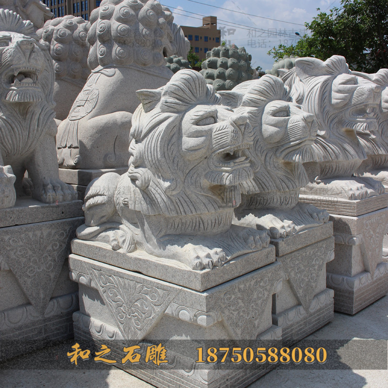 石雕獅子是我國的一種吉祥瑞獸擺件,古人認(rèn)為石雕獅子不但可以辟邪,而且還可以帶來祥瑞之氣。因此在很多門口都可以見到石獅子,形態(tài)各異的獅子塑像,常被擺放在一些寺廟,公司、工廠、商場、銀行、橋梁,園林等地方。