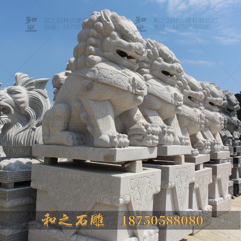 我國石雕獅子造型多種多樣,如北京獅、獻(xiàn)錢獅、網(wǎng)球獅、港幣獅、潮汕獅、戲獅等多種形態(tài)的獅子。石雕獅子可以通過需求加工出大型的石獅子,也有可愛的小石獅子。這些石獅子有的是坐姿石獅,有的是立姿石獅,有的是嬉戲石獅,都威嚴(yán)中帶有寧靜,是鎮(zhèn)宅守門瑞獸石雕的較好的選擇。