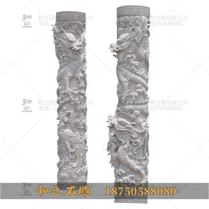 石雕龍柱常見的造型有單龍和雙龍兩種,一種是單條龍盤繞在一根圓柱上面,另一種是雙龍戲珠的石龍柱造型,每條龍?jiān)诓煌娘L(fēng)格下有不同的變化效果。龍柱雕刻的越深越好,也就是說整個(gè)龍柱更有立體感,輪廓更好。