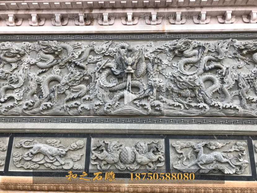 九龍壁通過(guò)精湛的雕刻技藝,將九條形態(tài)各異、栩栩如生的龍呈現(xiàn)在世人面前。這些龍或騰云駕霧,或翻江倒海,展現(xiàn)出非凡的氣勢(shì)與生命力。雕刻師們運(yùn)用淺浮雕、深浮雕乃至鏤空雕等多種手法,將龍的鱗片、胡須、眼神等細(xì)節(jié)刻畫(huà)得入木三分,使觀者仿佛能感受到龍的氣息撲面而來(lái)。這種藝術(shù)表現(xiàn)力,不僅提升了寺廟的整體藝術(shù)氛圍,也為中國(guó)傳統(tǒng)石雕藝術(shù)的發(fā)展樹(shù)立了典范。